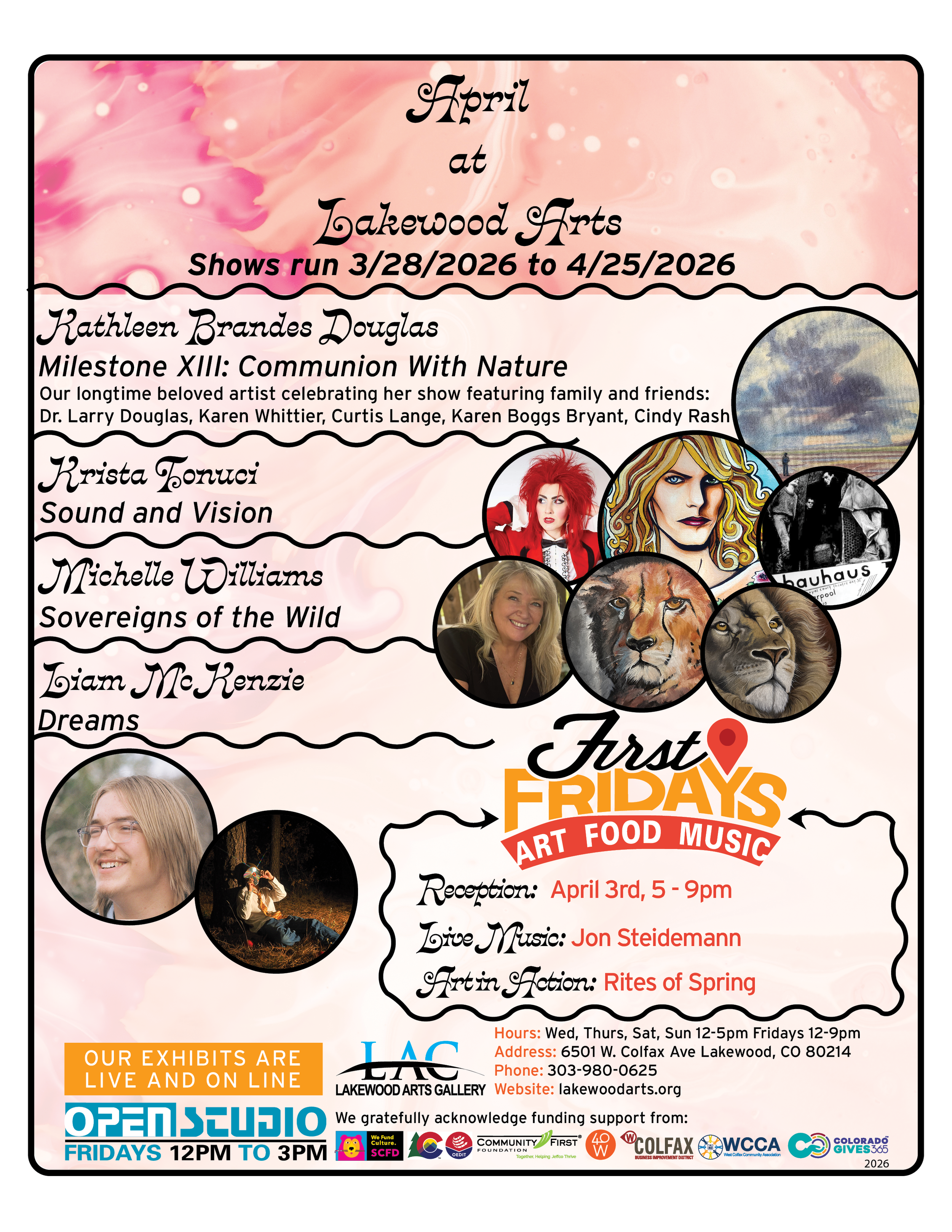 As a non-profit, co-operative arts council and gallery, we depend upon donations, endowments, grants and our landlords to help bring arts and culture to: Scientific & Cultural Facilities District, Colorado Creative Industries, ColoradoGives.org, West Colfax Business Improvement District, 40 West Arts Creative District and WCCA West Colfax. Thanks so much!
