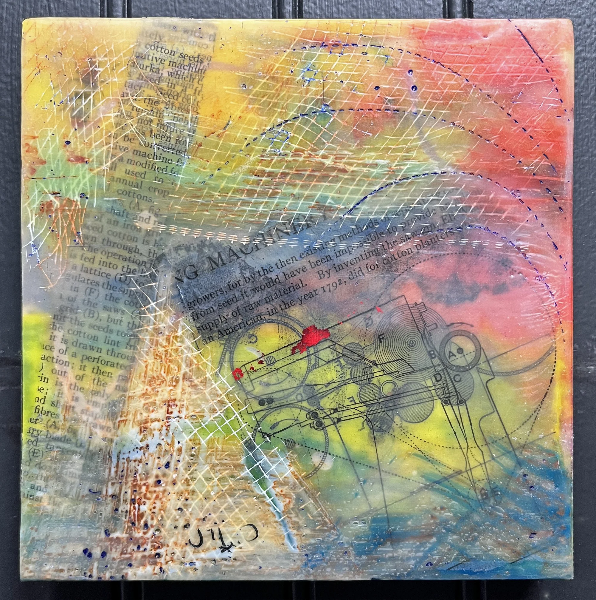 Judy Niewald, Machinery, Encaustic Mixed Medium, 6" x 6", $75