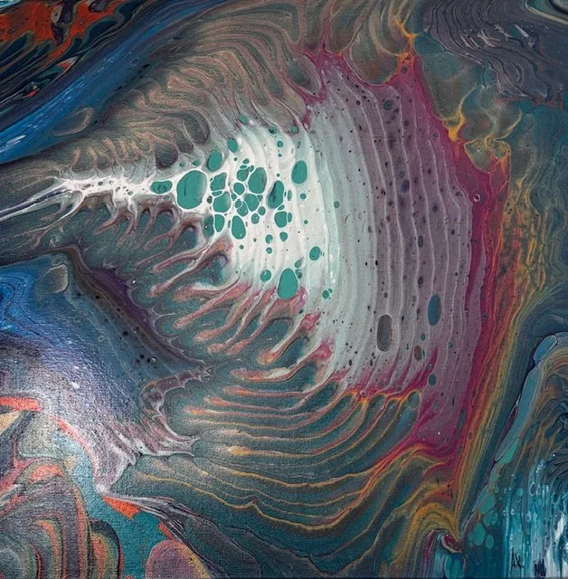 Robyn Jackson, Caterpillar, Acrylic Pour on Canvas, 12" x 12", $100