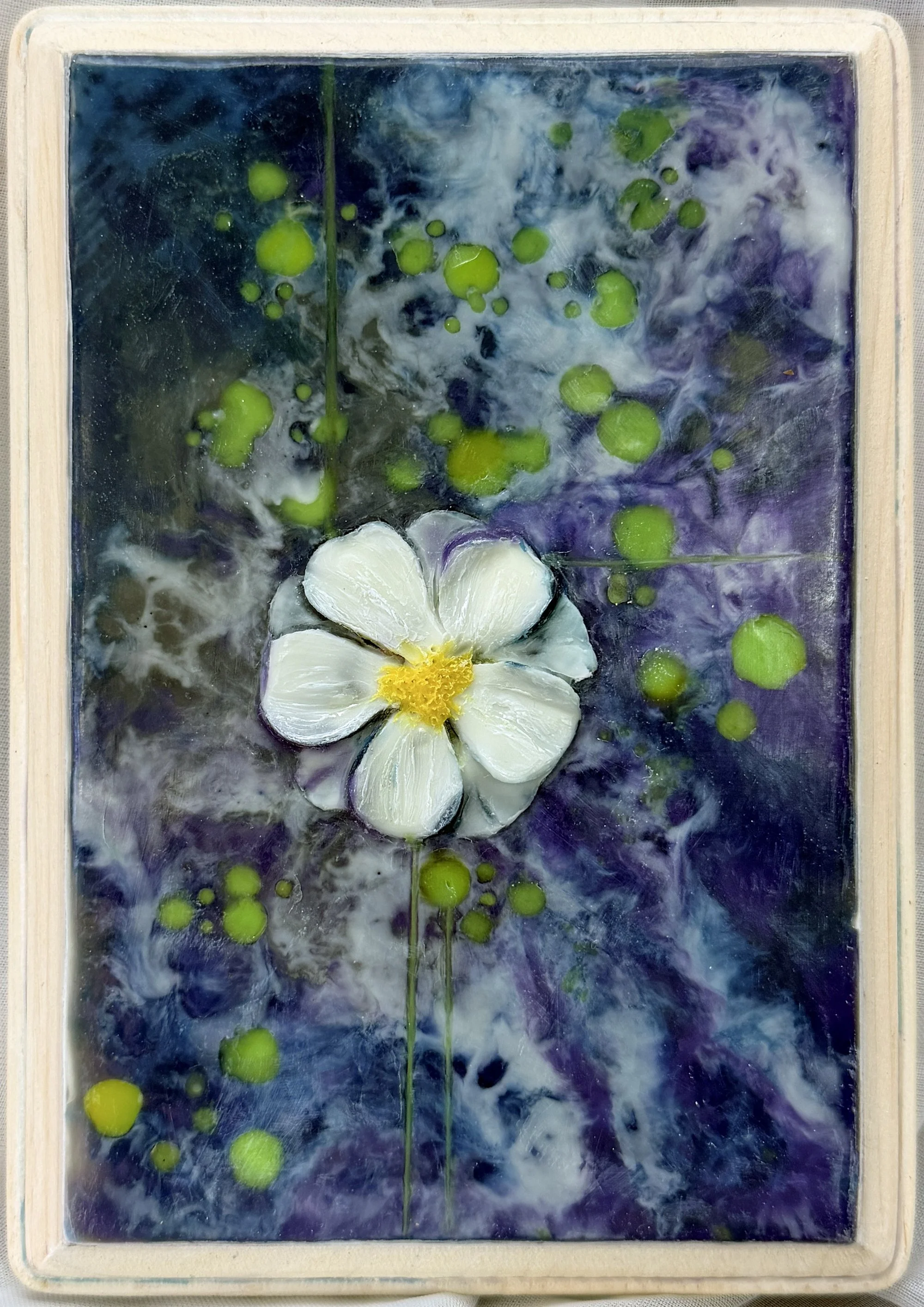 Judy Niewald, Single White Flower, Encaustic Mixed Medium, 5" x 7", $75